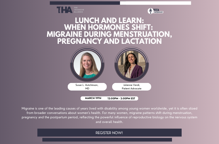 Register now for our Lunch & Learn – When Hormones Shift: Migraine During Menstruation, Pregnancy and Lactation on Thursday, March 19th at 12 PM EST.